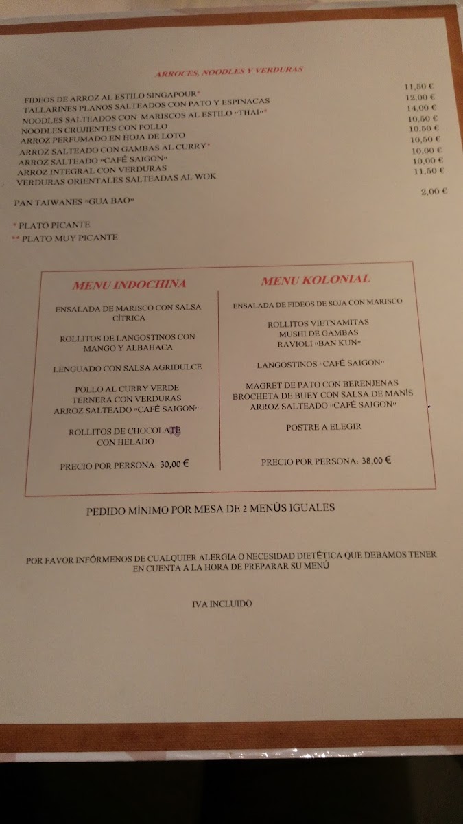 Saigon Kafe Jatetxea also offers refreshing drinks like Cerveza Saigon, a beer that complements the bold flavors of the dishes. Whether you're enjoying a light salad or indulging in rich desserts, the restaurant's menu offers a wonderful balance of flavors that is sure to satisfy any palate.